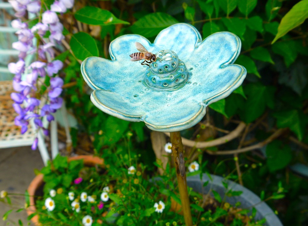 These bee baths provide access to safe drinking water for our bees who need water to stay hydrated, especially in hot weather.
